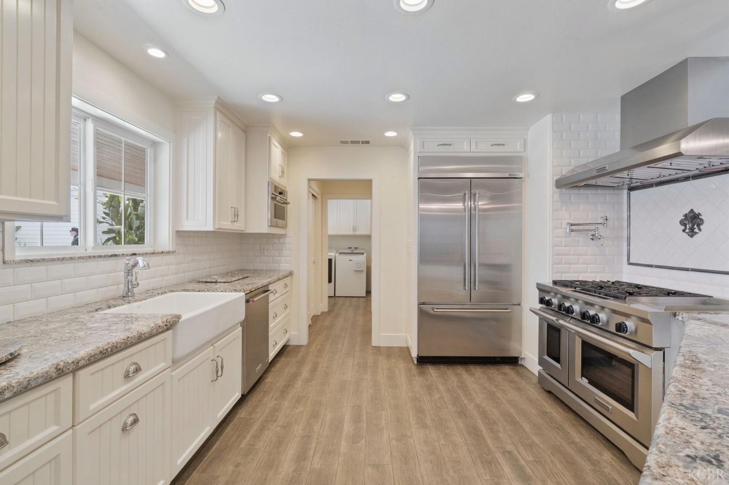 Welcome to your dream home at 12905 13th Rd in Hanford, CA! This expansive 3,000 square foot residence sitting on 1.6 acres had a complete tear down remodel in 2016. The home boasts a blend of luxury and functionality. With three generously sized bedrooms, each featuring its own private bathroom, and walk in closet and an additional half bath downstairs for guests, comfort and convenience are paramount. Step into the chef's paradise with top-of-the-line KitchenAid commercial appliances, perfect for culinary creations. Relax and unwind in the main suite, featuring a luxurious claw tub, a spacious walk-in shower, and a grand walk-in closet. This thoughtfully designed home includes laundry hookups on both levels for effortless laundry days. Step outside to the enchanting backyard, where you'll find a sparkling swimming pool complete with a captivating water feature, perfect for entertaining or enjoying sunny California days. The home also features owned solar panels, dog kennel, RV parking shade, Chicken coop, Livestock pen and an oversized detached 2 car garage. The property also includes impressive additional structures: a 30x40 metal building featuring a one-bedroom, one-bathroom ADU for guests or rental income, and a sprawling 30' x 100' metal building equipped with an executive office, a dedicated craft room, and a cold storage room, accommodating all of your recreational and professional needs. Experience the perfect blend of comfort, luxury, and practicality at this remarkable property. Don't miss your chance to make this stunning home yours!